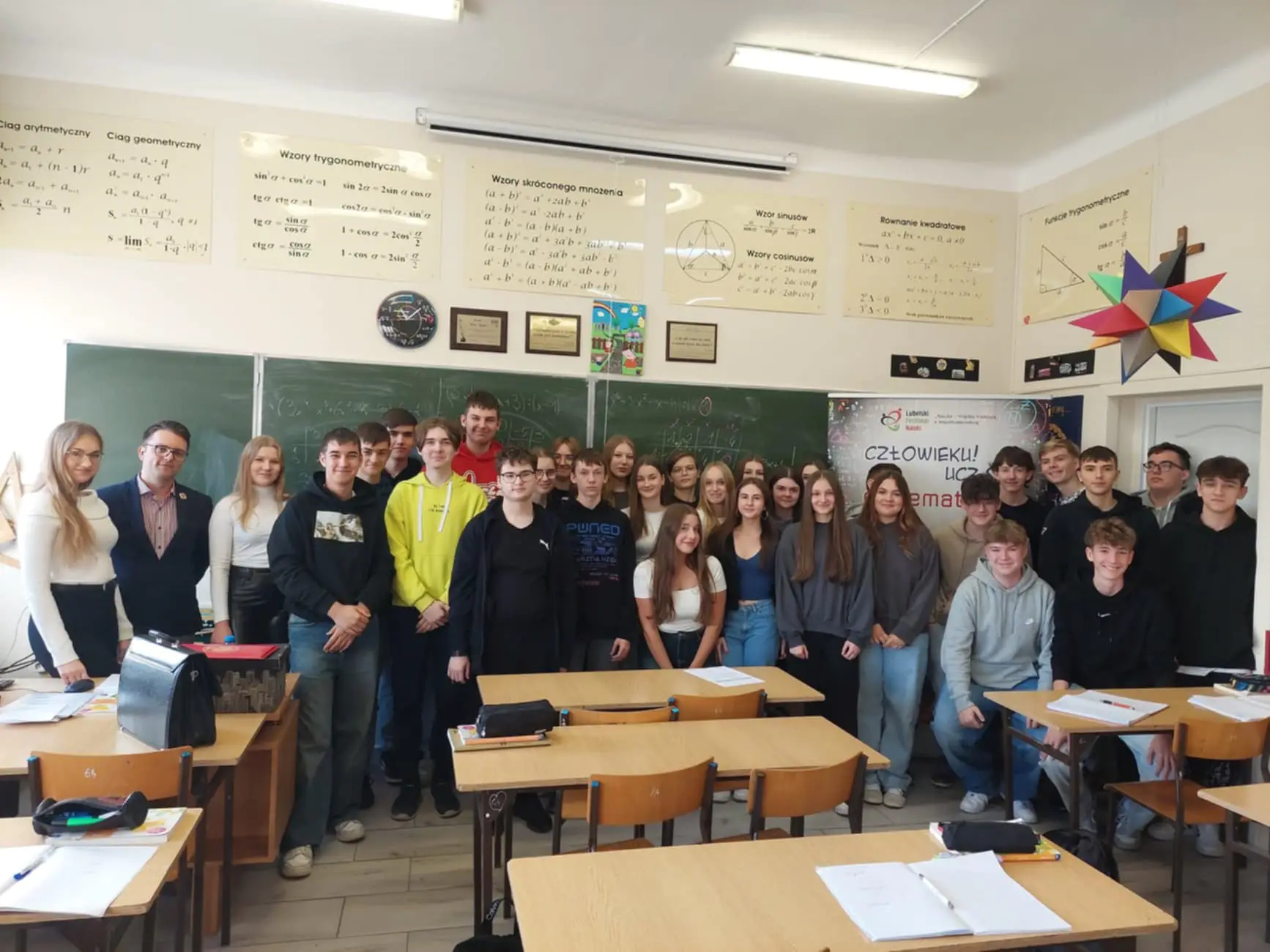 25 października 2024 r odbył się cykl spotkań z pracownikami i studentami Politechniki Lubelskiej w ramach projektu Ministerstwa Nauki „Politechniczna Sieć VIA CARPATIA im. Prezydenta RP Lecha Kaczyńskiego”. Uczniowie klas 2a i 2f uczestniczyli w lekcjach matematyki prowadzonych przez p. mgr inż. Alberta Raczkiewicza, studentki: Karolinę Woźnicę i Dominikę Zydorczyk oraz w zajęciach z pierwszej pomocy prowadzonych przez p. mgr inż. Magdę Wlazło. Na zakończenie w ramach promocji goście przedstawili ofertę Wydziału Matematyki i Informatyki Technicznej Politechniki Lubelskiej. W spotkaniu wzięły udział również klasy 3a, 3b, 3f i 4a.